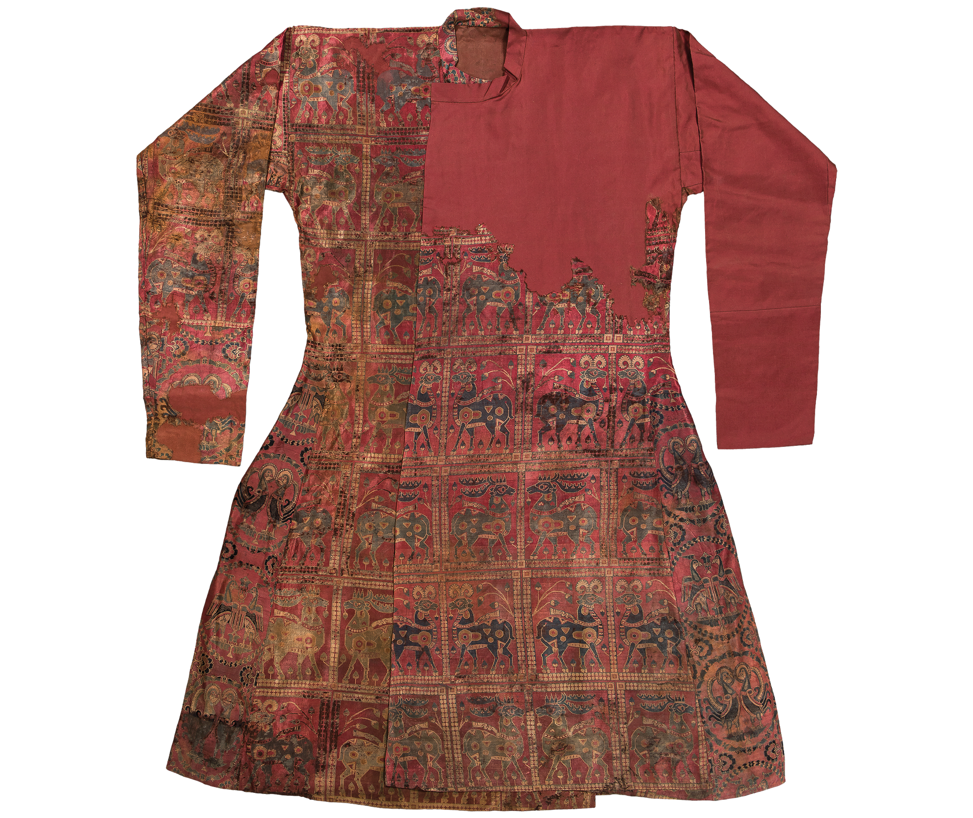 Les représentations de béliers marchant, portant un collier perlé ou des rubans flottants, sont typiquement de style et d’inspiration sassanide, et symbolisent fortune et puissance. Le motif composé de deux bélier affrontés u centre d’un médaillon perlé fut très populaire sous les Tang.