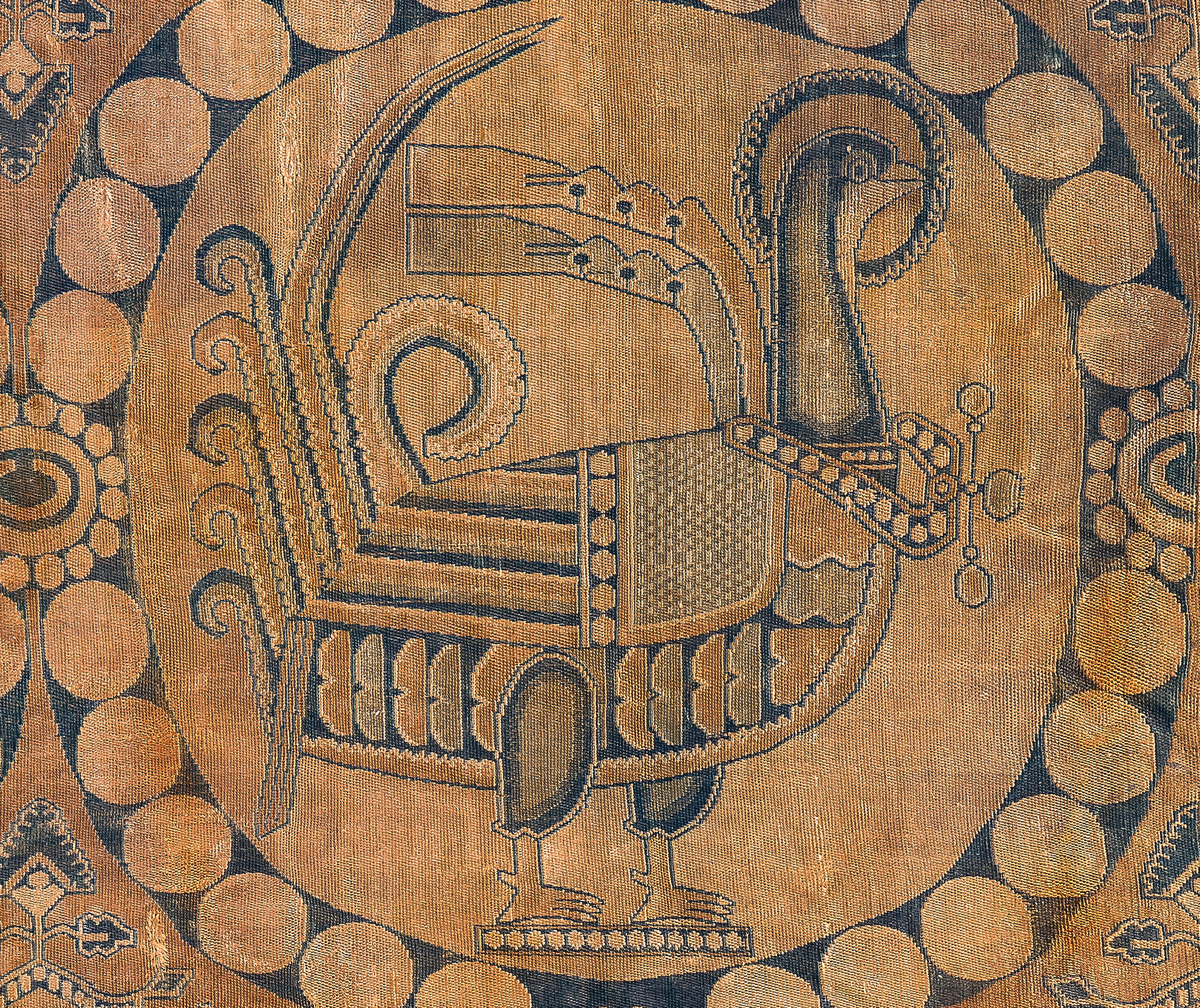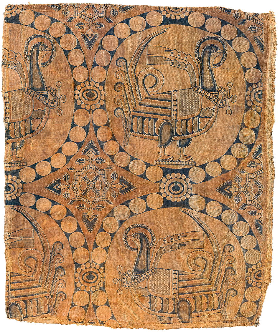 Sur les textiles de ce groupe il est représenté de profile, seule ou affronté, portant un collier de parles ou un ruban flottant au vent, mais toujours dans un médaillon de pétales ou de fleurs.