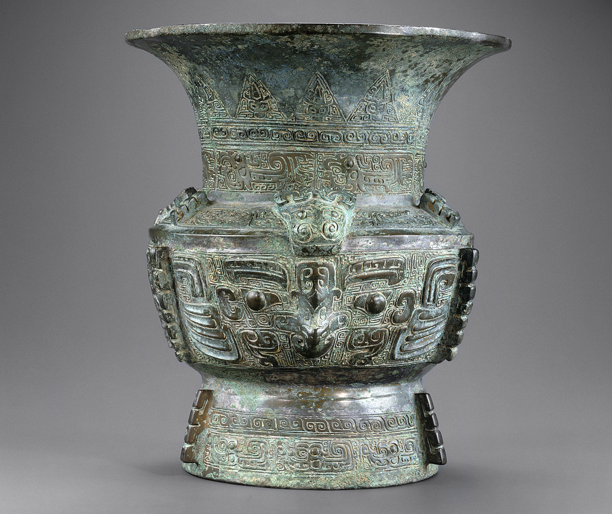 Vase rituel en bronze de forme zun Hauteur : 35 cm Dynastie Shang, période Yinxu, circa 13ème – 11ème siècles avant J.-C.